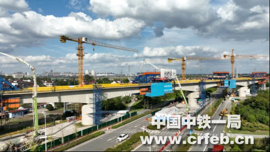 2024年5月16日,經過近5個小時的連續澆筑,國內80米主跨連續梁首例智能造橋機首個節段,在中鐵一局滬渝蓉高鐵項目南通特大橋跨青年路連續梁澆筑完成。