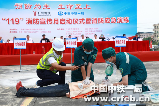 廣東珠三角城際軌道有限公司、中鐵一局一公司、白云區應急管理局、住建交通局質量安全監督站、白云區神山消防救援站,第二人民醫院等單位負責人及項目參建人員共100余人參加此次消防演練活動。