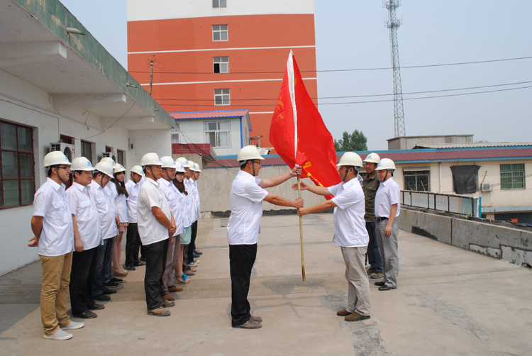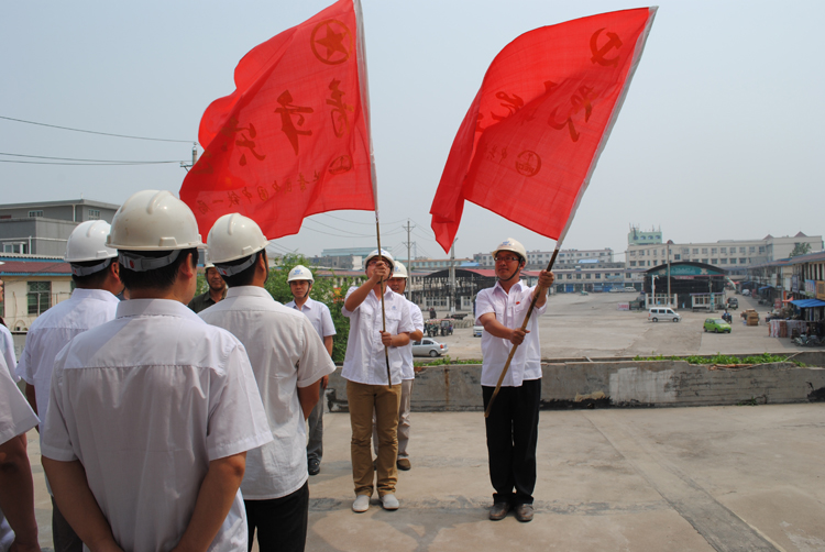 下午14時,授旗儀式正式開始。項目黨支部書記李軍鵬宣讀了《南水北調(diào)項目關(guān)于成立黨員先鋒隊、青年突擊隊的決定》,隨后,項目黨支部書記李軍鵬和公司團(tuán)委副書記趙利強分別對項目黨員先鋒隊和青年突擊隊進(jìn)行了授旗。鮮紅的隊旗迎風(fēng)飄揚,展示出兩支隊伍的青春和活力。