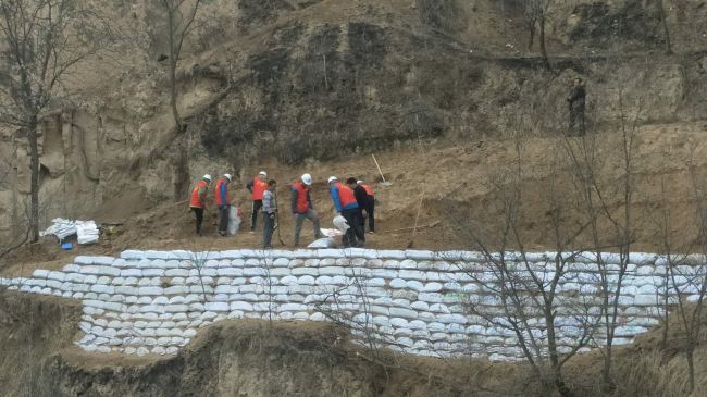 活動(dòng)開(kāi)始后,項(xiàng)目部的青年們個(gè)個(gè)朝氣蓬勃,在項(xiàng)目團(tuán)支部書(shū)記劉彤涵的帶領(lǐng)下,經(jīng)過(guò)近1個(gè)小時(shí)的山路攀爬徒步,來(lái)到了當(dāng)?shù)厍鍧究h石咀驛鎮(zhèn)糜山河村,同當(dāng)?shù)卮迕褚黄鹦拗湫碌谋憬莅踩娜粘J褂玫缆?。大家紛紛揮動(dòng)鐵鍬,拿起編織袋,將泥土收集、搬運(yùn)、規(guī)整,沒(méi)有人在意臉上被灰塵鋪滿,沒(méi)有人在意腳上被潮濕泥土浸臟。大家全神貫注的將泥土碼齊、拍平,盡心盡力做好每一項(xiàng)修筑流程。