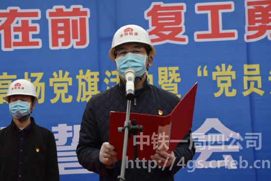 為扎實(shí)做好防疫工作,切實(shí)抓好復(fù)工復(fù)產(chǎn),充分發(fā)揮黨建引領(lǐng)作用,3月13日上午9時(shí)30分,公司洛陽(yáng)地鐵1號(hào)線項(xiàng)目黨支部聯(lián)合洛陽(yáng)市軌道交通集團(tuán)黨群工作部以“黨建共建”為抓手,在解放路站舉行“防疫沖在前,復(fù)工勇爭(zhēng)先”黨員先鋒隊(duì)及青年突擊隊(duì)授旗活動(dòng),全面激發(fā)項(xiàng)目部黨員干部主動(dòng)沖鋒“疫”線,踐行初心和使命。洛陽(yáng)市軌道交通集團(tuán)黨委副書記張谷江,黨群工作部部長(zhǎng)李海亮,建管分公司副經(jīng)理劉君,中國(guó)中鐵洛陽(yáng)軌道交通工程指揮部副指揮長(zhǎng)張華強(qiáng)出席此次活動(dòng)。