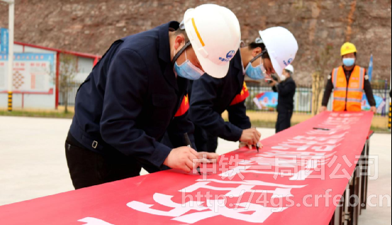 3月14日,公司黔江制梁場(chǎng)“防疫沖在前 復(fù)工勇爭(zhēng)先”高揚(yáng)黨旗主題活動(dòng)暨“大干180天 堅(jiān)決完成施工任務(wù)目標(biāo)”勞動(dòng)競(jìng)賽儀式在梁場(chǎng)1號(hào)臺(tái)位處正式啟動(dòng),成都大西南鐵路監(jiān)理公司涪秀二線項(xiàng)目監(jiān)理站總監(jiān)楊恩、中鐵一局涪秀二線項(xiàng)目經(jīng)理部負(fù)責(zé)人仇志龍及黨工委書記趙建光出席本次儀式。