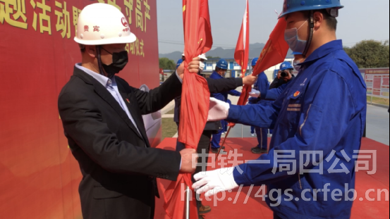 旗幟引領方向,先鋒凝聚力量。3月20日,公司重慶地鐵4號線項目積極貫徹落實中鐵一局及公司在疫情防控和復工復產中切實發揮黨支部和黨員作用的部署要求,舉行“防疫勇當先、復工奪高產”高揚黨旗主題活動暨“大干60天”勞動競賽啟動儀式,掀起“高揚黨旗促生產”施工高潮。重慶軌道交通4號線建設運營有限公司董事長兼黨工委副書記林兵、副總經理李勁,公司黨委副書記、紀委書記陸洪平,項目部黨員、團員、勞務工人代表等80余人參加此次活動。