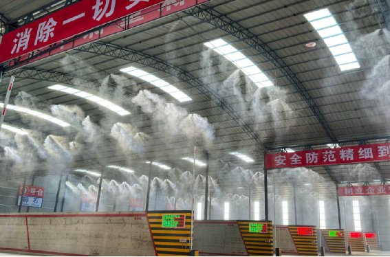 料倉噴霧降塵裝置。根據粉塵產生位置,進行分區控制,極大地降低了生產過程中所產生的粉塵污染,同時也有效調節了料倉內的溫度,進一步改善空氣質量。采用智能噴霧系統,根據粉塵濃度、溫度自動調節噴水量及時間間隔;噴淋水源確保嚴格凈化,防止噴嘴堵塞,使高壓細霧有效捕捉粉塵顆粒。