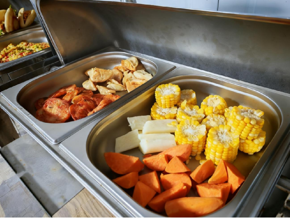 針對分部內(nèi)患有糖尿病的職工,食堂特別推出“控糖專屬套餐”。套餐嚴(yán)格控制主食攝入量,以雜糧飯、蕎麥面等粗糧為主,搭配低油、低鹽、低糖的蔬菜和優(yōu)質(zhì)蛋白質(zhì),既保證營養(yǎng)均衡,又幫助職工控制血糖。用雜糧粥替代白粥,用蒸山藥、涼拌黃瓜替代高淀粉菜品,用蔬菜和面代替精白面饅頭,讓暖心服務(wù)精準(zhǔn)落地。“以前擔(dān)心早餐吃包子血糖波動,現(xiàn)在食堂專門給我們準(zhǔn)備了雜糧飯、水煮蛋還蒸的有好幾種粗糧,太貼心了!”提及食堂的變化,患有糖尿病的職工老李笑著說。食堂團(tuán)隊(duì)從“舌尖”上的細(xì)節(jié)破題:一方面嚴(yán)守食材“干凈關(guān)”,每日采購的新鮮蔬菜、肉類,保證食材的新鮮,餐具高溫消毒,半開放的操作間實(shí)時向職工公示衛(wèi)生情況,讓職工的每一口飯都吃得放心。