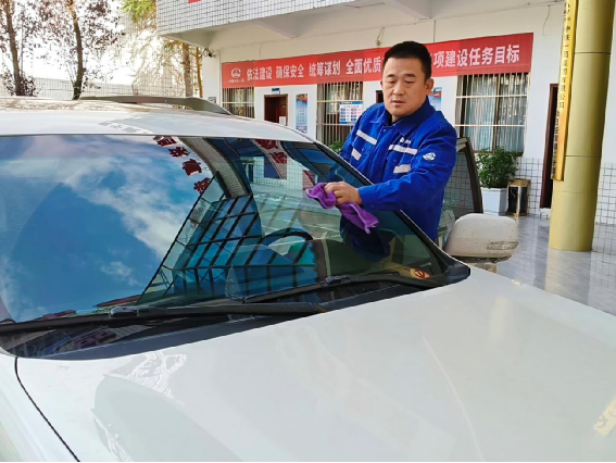 司機(jī)文曉毛進(jìn)行車輛保潔