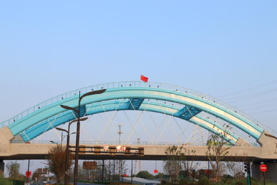 漫步于江東大道,抬頭即可看到1-80米三線系桿拱橋,平整堅實優美的地標建筑物贏得過往路人紛紛點贊—鮮為人知的是,項目施工面臨多重考驗,既要跨越繁忙市政道路,又易受技術條件影響。尤其在現澆梁施工中,梁體核心混凝土水化熱受熱膨脹易催生溫度裂縫、蜂窩麻面等質量隱患,給項目施工質量管控帶來嚴峻挑戰。