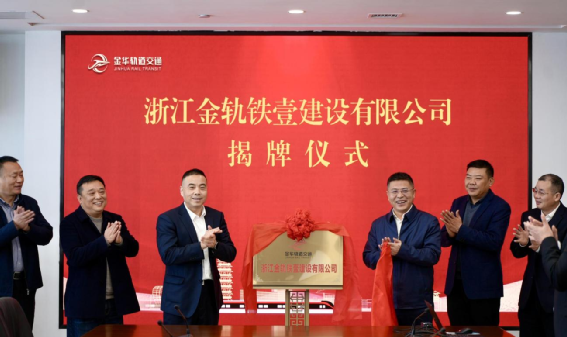 金華市國資委宣讀公司成立批復文件;出席活動的領導共同揭牌,紅綢緩緩落下,“浙江金軌鐵壹建設有限公司”的牌匾赫然在目,現場響起了熱烈的掌聲。