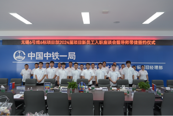 8月11日上午,無錫地鐵6號線6標項目新員工座談暨導師帶徒簽約儀式在會議室舉行。項目領導班子、副總工、各部門負責人及新員工共21人參會,會議由項目黨支部書記主持。