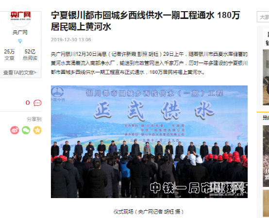 新華網報道:銀川都市圈城鄉西線供水工程項目通水