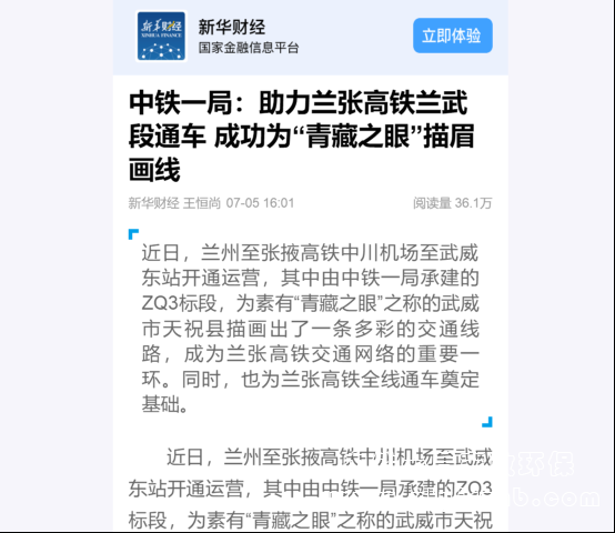 公司參建的蘭張高鐵蘭武段開通運營廣受媒體關注