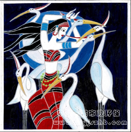 作品簡介:《舞動人生》畫中一名著赤色戎裝的妙齡女子,靈動曼妙的身姿與鶴共舞,如夢如幻,她舞動著不單單是自己的青春,更是自己的人生,時刻都洋溢著活力與陽光,僅憑著對舞蹈藝術執著的愛