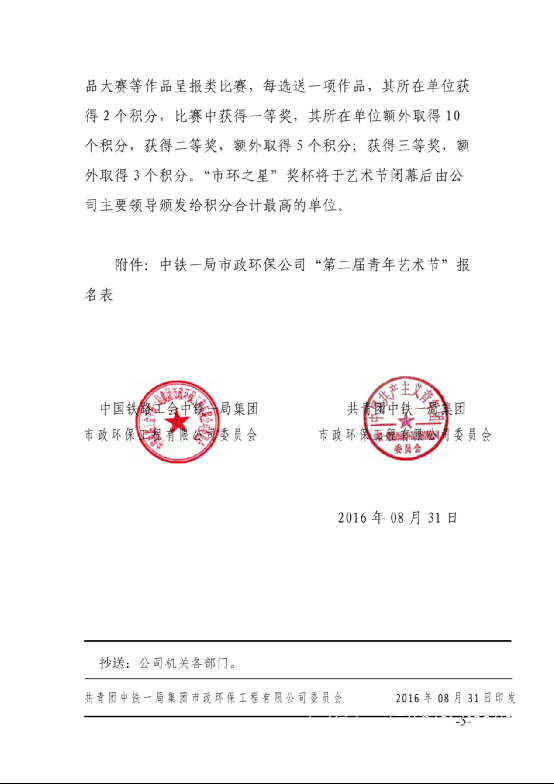 關于舉辦中鐵一局市政環保工程有限公司“第二屆青年藝術節”的通知