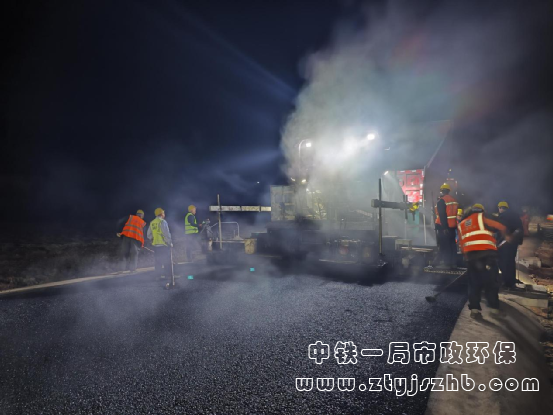 本次施工路段全長約1.4公里,采取全幅攤鋪工藝,有效減少縱向接縫,確保路面整體平整度。施工期間,項目團隊克服了復雜天氣與連續作業的雙重挑戰。清晨時分,現場常被濃霧籠罩,能見度較低,但攤鋪作業仍按計劃持續推進,施工人員在霧中密切配合,保障工序銜接有序。為全力推進工程進度,團隊還科學組織了夜間施工,在確保照明與安全的前提下,保持了施工節奏的連貫穩定?,F場負責人帶班管控,對瀝青溫度、碾壓遍數與邊角處理等關鍵環節進行嚴格把關,保障了路面成型均勻密實、質量達標,為后續順利通車奠定了堅實基礎。