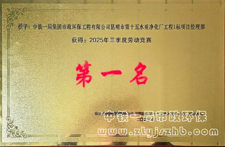 兩連冠!昆明市第十五水質(zhì)凈化廠再獲中鐵開(kāi)投2025年季度勞動(dòng)競(jìng)賽第一名