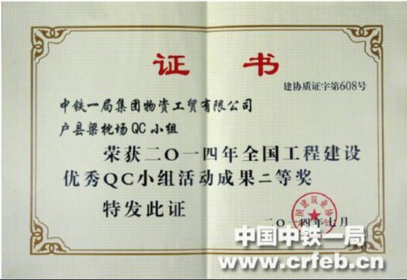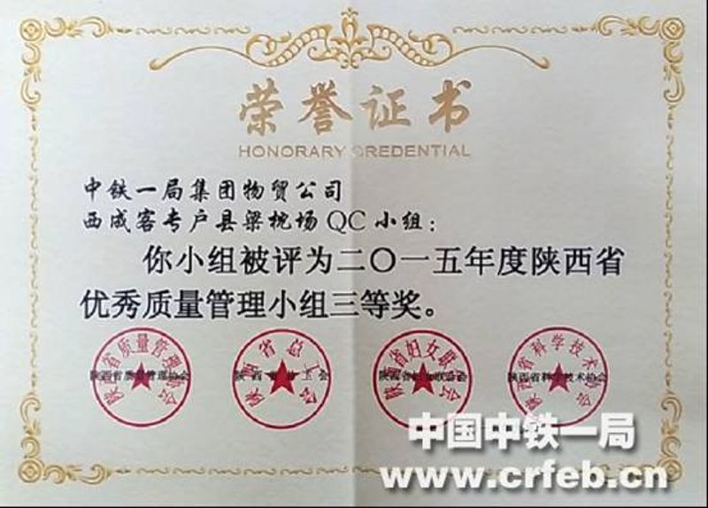 2016年7月15日,西成客專戶縣梁枕場QC小組獲得全國鐵道行業質量信得過班組優秀獎,獲此殊榮是公司的大力支持和戶縣梁枕場QC小組不斷努力的結果。