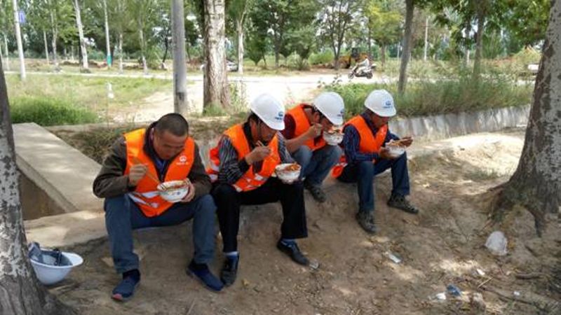 梁場場地遠離村莊,沒電沒水沒住處。項目便為500余名參建人員搭建了10個簡易帳篷臨時落腳?,F場起灶,給職工和外協工一起供飯。當時正是風沙季節,兄弟們坐在地上就著泥沙吃著大鍋飯,大家一起吃,一起住,一起勞動。
