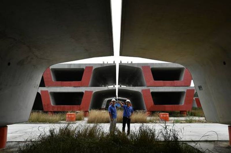 6月23日,在制梁場(chǎng)工地見到馬建市時(shí),他正跟兩名技術(shù)員,一邊說一邊比劃著,腋下夾著一本藍(lán)皮資料。