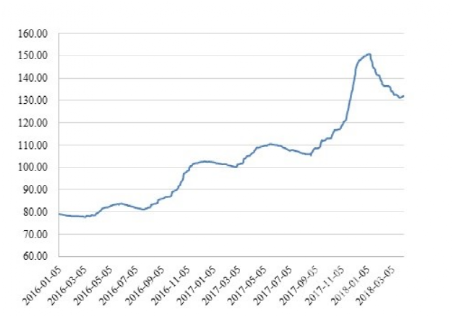 全國水泥價格經(jīng)過2016、2017年的扶搖直上,2018年1月上旬達到高點后開啟下跌,1-3月中旬持續(xù)下跌,3月末全國水泥價格指數(shù)為132.03點,相比2018年初下跌了12.09%,但相比去年同期仍有25.48%的漲跌。